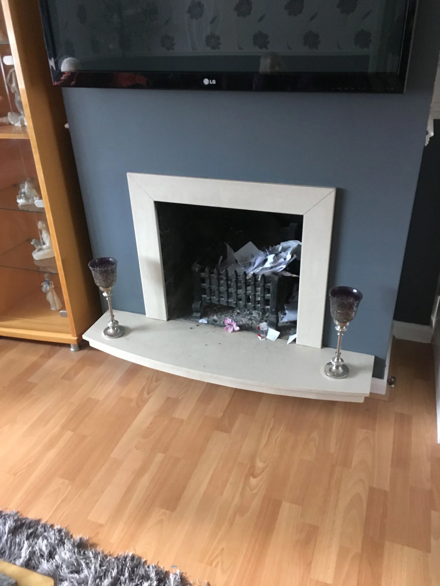 Robyn Russell November 18, 2019 Jotul f105 Robyn Russell November 18, 2019 Jotul f105 in white on short legs with slate hearth (The dog is called Lucy!) Before After